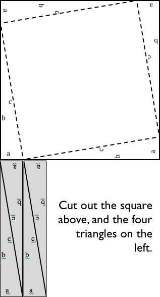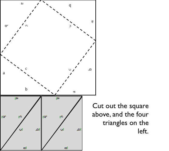 This exercise is best done in small groups of students (2-3 per group). Pass out Pythagorean Proof
